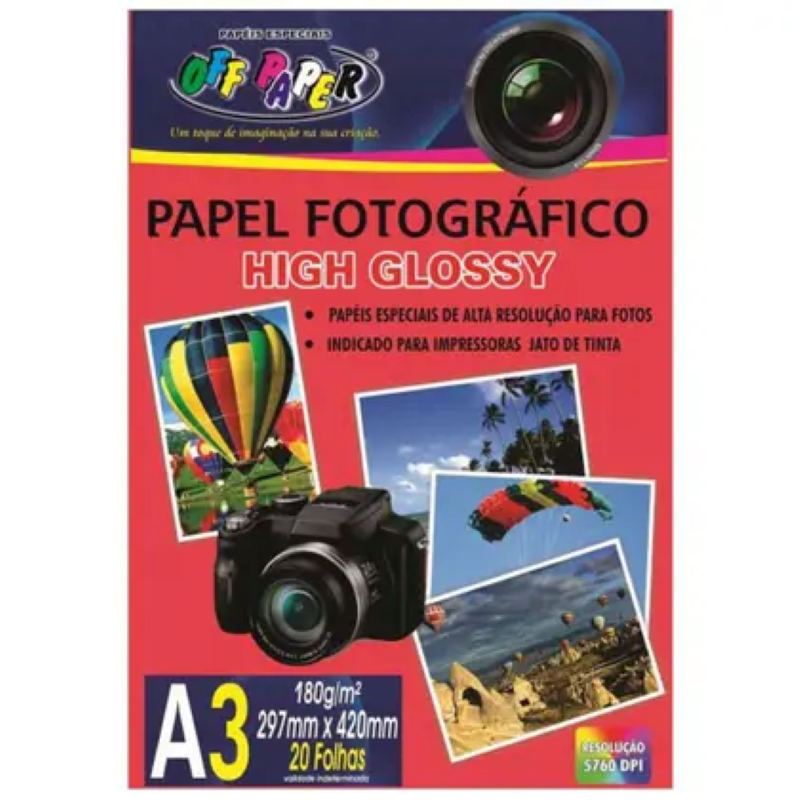 Papel especial de alto brilho (glossy). Alta resolução para impressão de fotografias.
